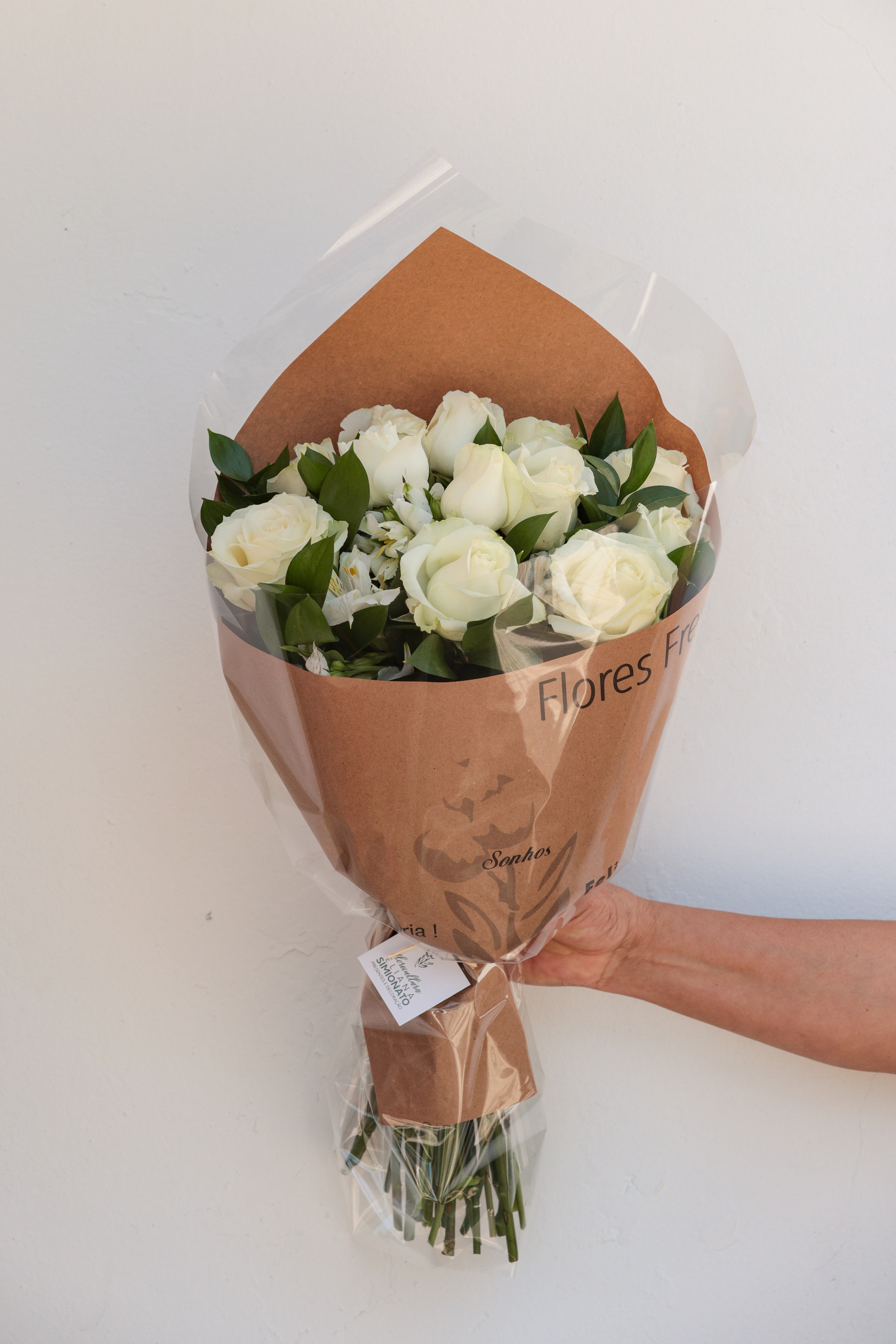 O buquê com 12 rosas brancas da Floricultura Eliana simboliza pureza e elegância. Um presente imponente para surpreender em grandes ocasiões.