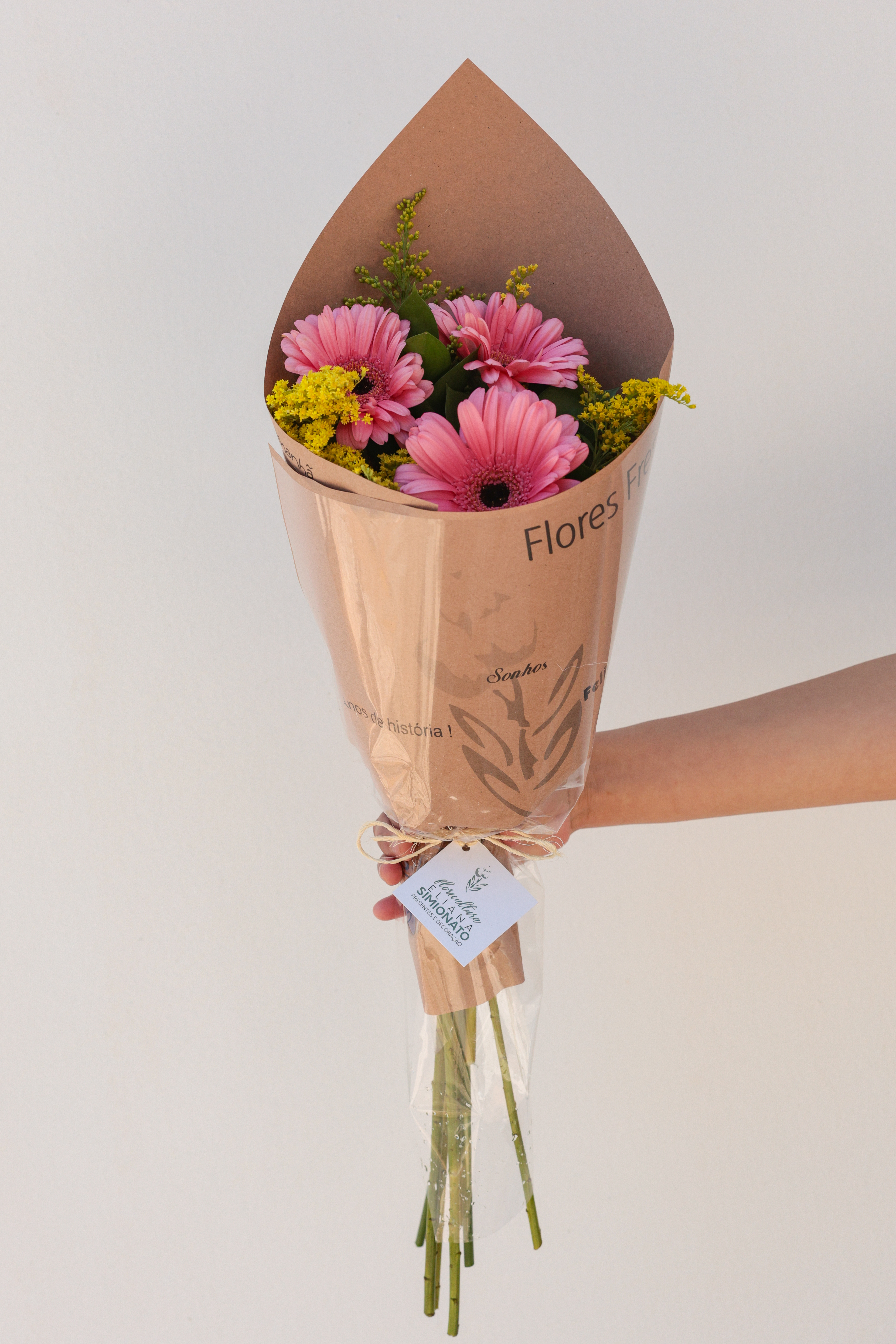 O buquê com 3 gérberas rosa claro da Floricultura Eliana transmite ternura e romantismo. Uma opção encantadora para celebrar sentimentos com leveza.
