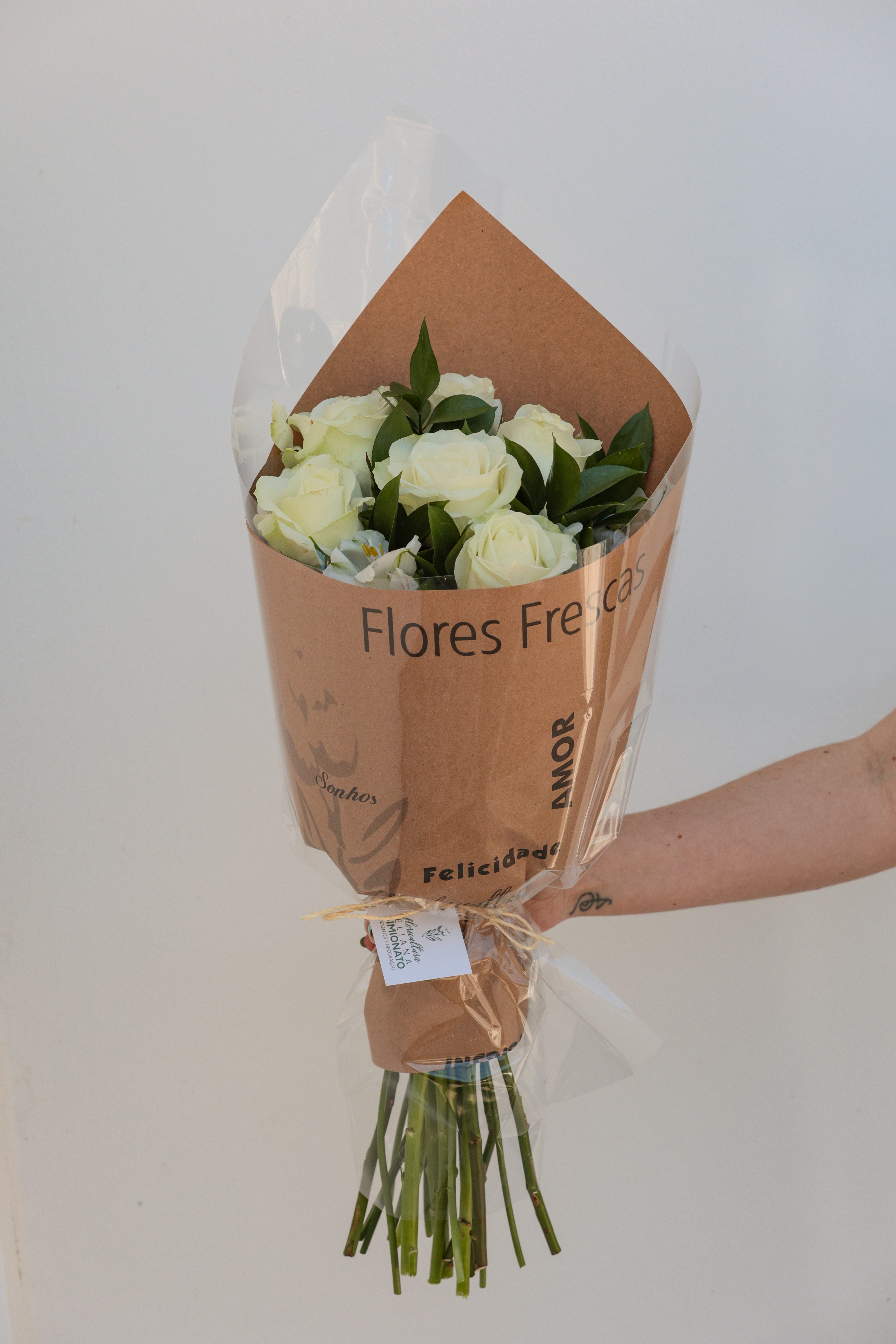 O buquê com 6 rosas brancas da Floricultura Eliana transmite paz e elegância em um presente encantador e atemporal.