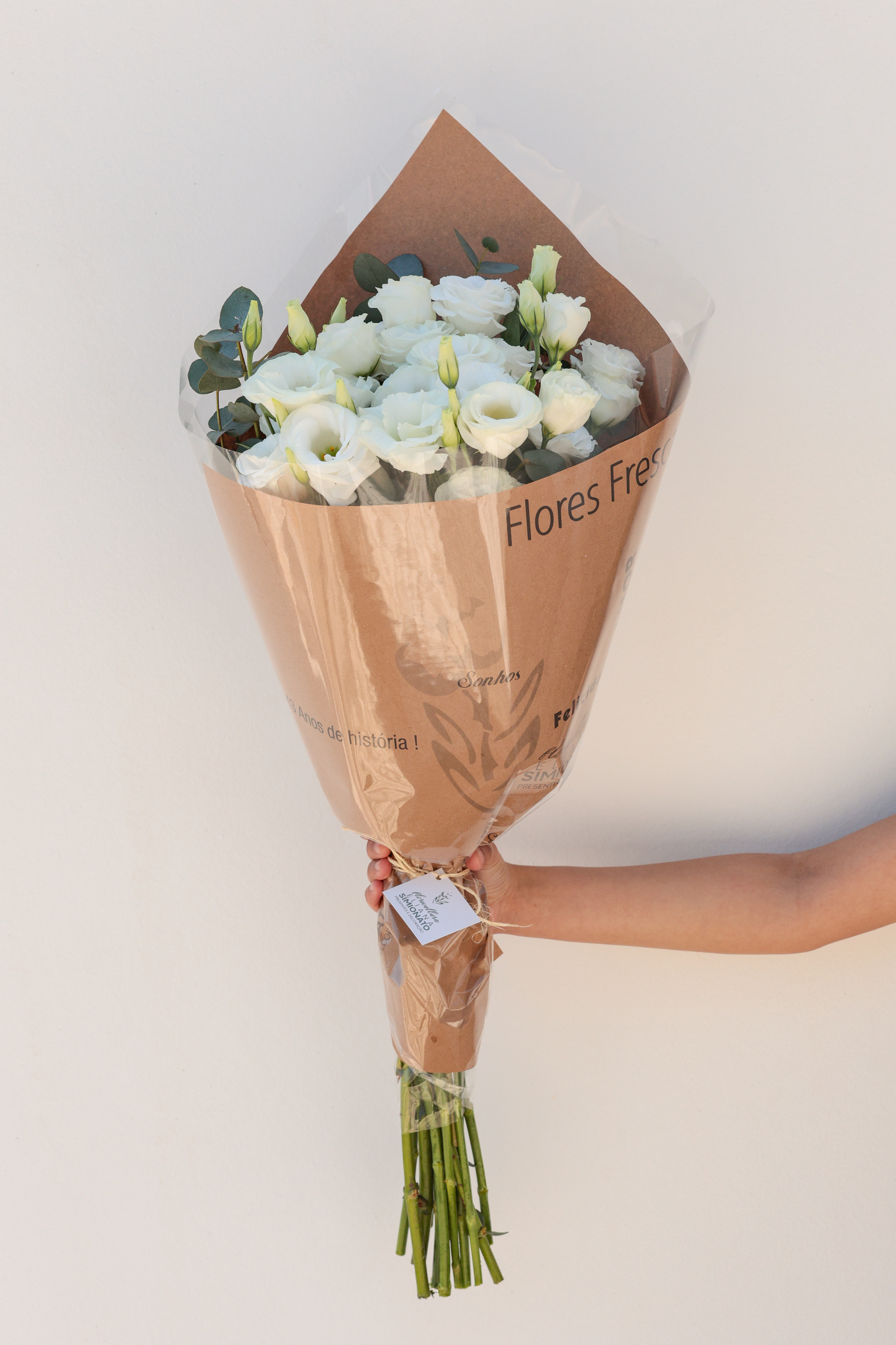 O buquê grande de lisianthus branco da Floricultura Eliana é elegante e imponente. Suas flores delicadas em arranjo mais volumoso transmitem sofisticação e fazem deste buquê uma escolha perfeita para ocasiões especiais.