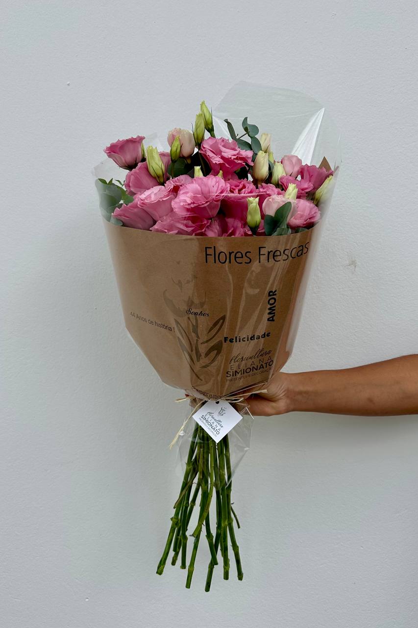 O buquê grande de lisianthus rosa da Floricultura Eliana é encantador pela suavidade de suas flores. Com um visual leve e delicado, transmite romantismo de forma simples e elegante, perfeito para iluminar qualquer ocasião especial.