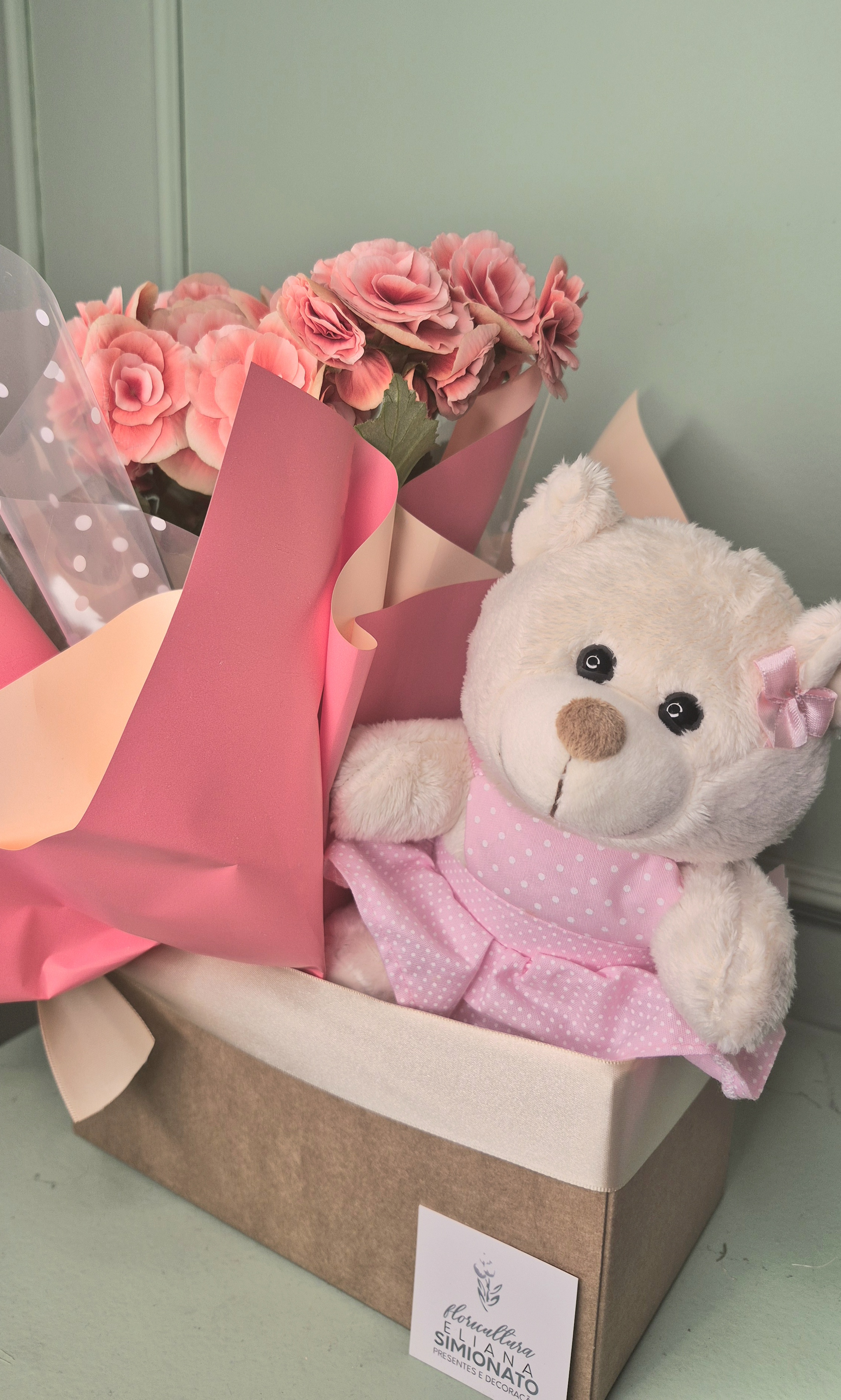 As boas-vindas ficam ainda mais especiais com o nosso Kit Begônia e Ursinha de vestido. 💕