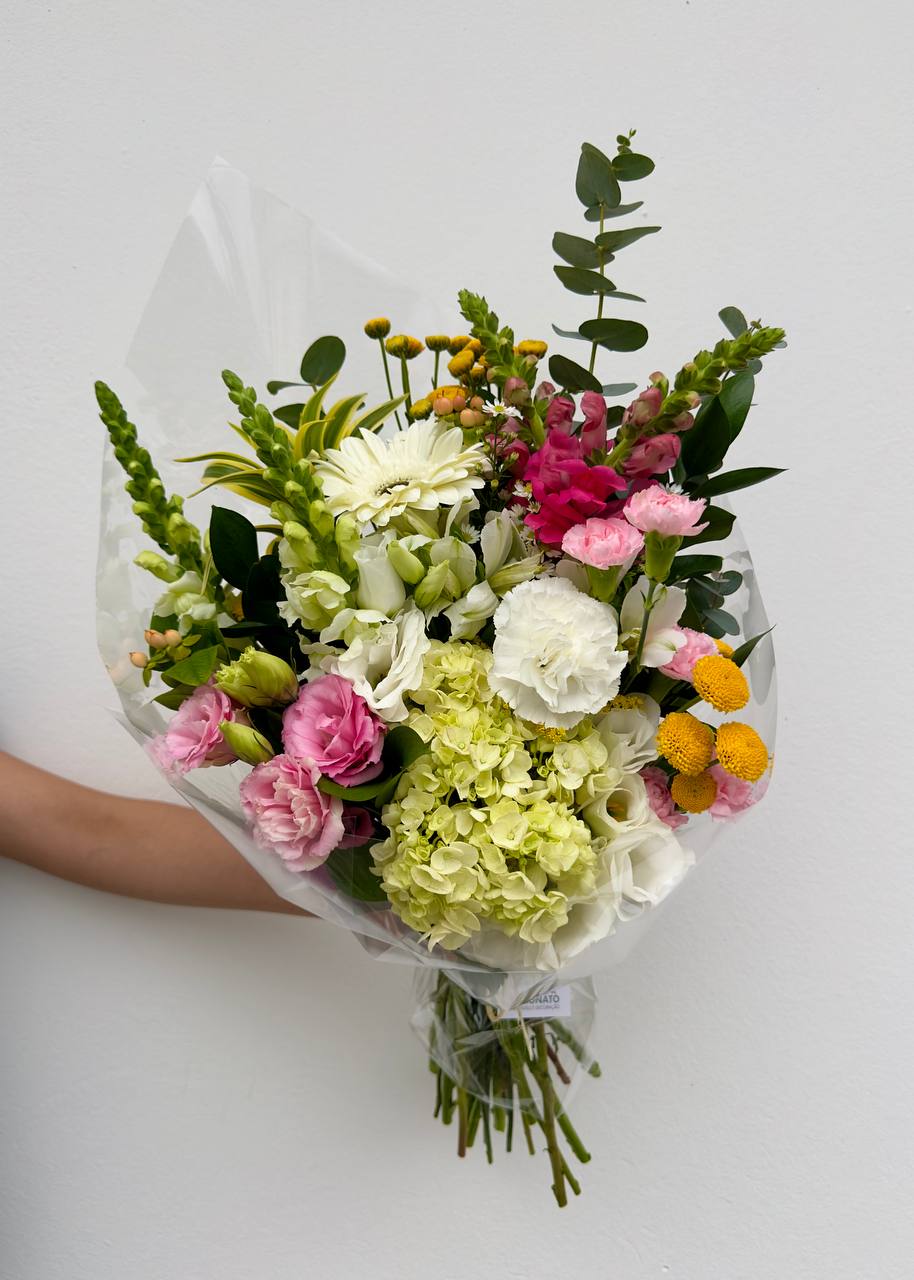 - Flores sempre frescas, entregues no mesmo dia da semana, em arranjos autorais com as flores da estação — selecionadas conforme a disponibilidade da semana.